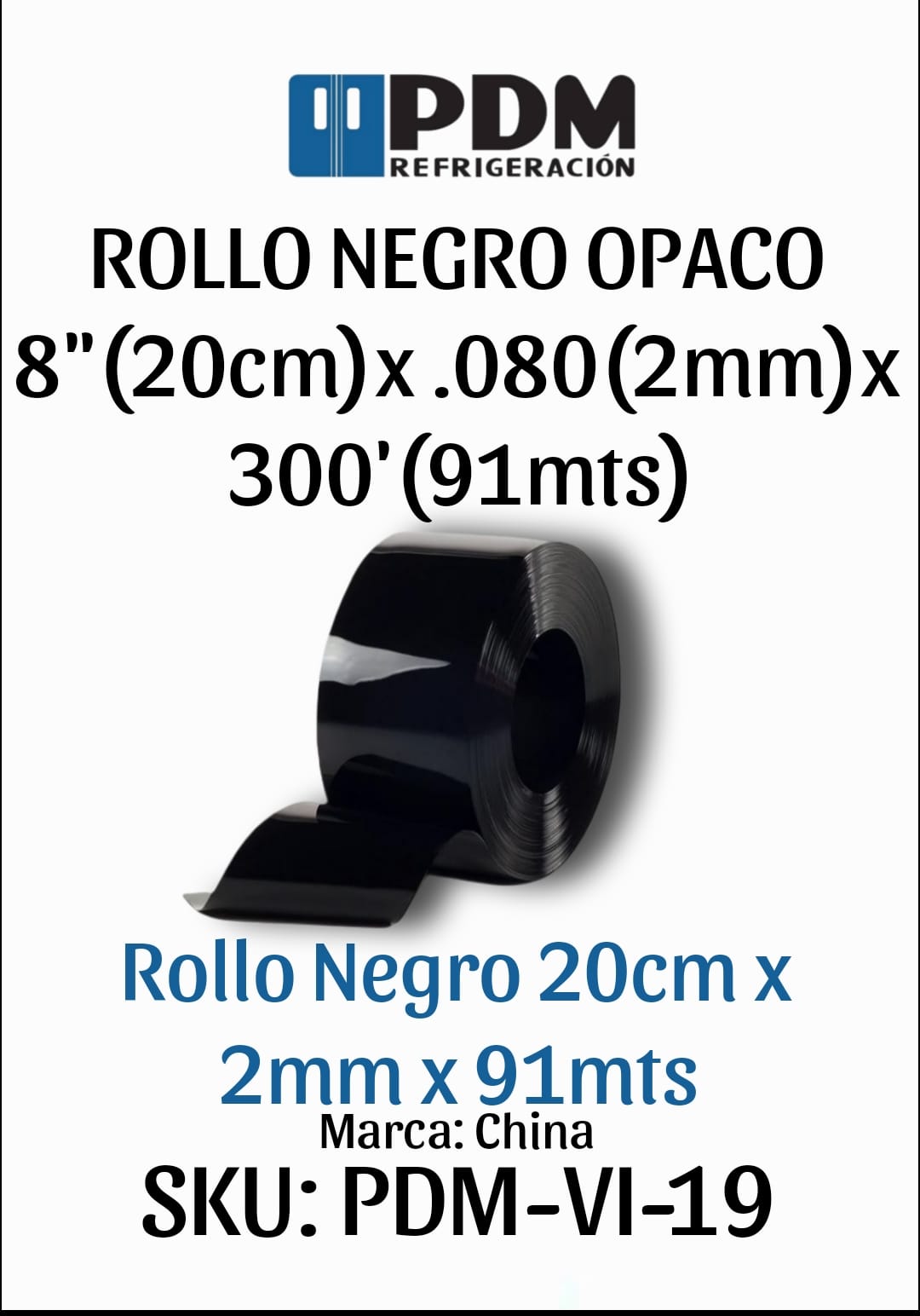 Rollo Negro 20cm x 2mm x 91mts